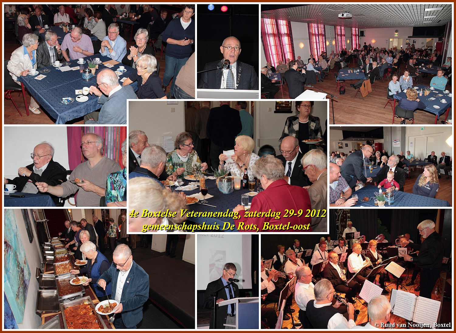 Inmiddels voor de vierde keer op rij heeft Stichting Veteranen Boxtel, in nauwe samenwerking met de Gemeente Boxtel, de Boxtelse Veteranendag georganiseerd. Dit jaar was er extra aandacht voor de periode Nieuw-Guinea. In 2012 is het vijftig jaar geleden dat Nederland op 15 augustus 1962 dit gebiedsdeel, na toenemende internationale druk, afstond aan Indonesië. Bij benadering dertigduizend Nederlandse militairen, waaronder ook Boxtelse, dienden gedurende een periode in dit tropische deel van Nederland, dat tussen 1949 en 1962 Nederlands Nieuw-Guinea heette. Vóór 1949 maakte het gebied deel uit van Nederlands-Indië. De Boxtelse Veteranendag is gehouden in gemeenschapshuis De Rots aan de Nieuwe Nieuwstraat nr. 7 te Boxtel-Oost. Nieuw-Guinea-veteraan en bestuurslid Stichting Veteranen Boxtel, Jan van Beers heeft een terugblik gegeven op zijn uitzendperiode. Seniorenorkest Buchestelle heeft de bijeenkomst met muziek opgeluisterd. De wederom zeer geslaagde dag is rond 16.00 uur afgesloten. Onderstaande collage geeft een beeld van de dag, de op deze dag gemaakte foto’s kunt u bekijken door op de collage te klikken.